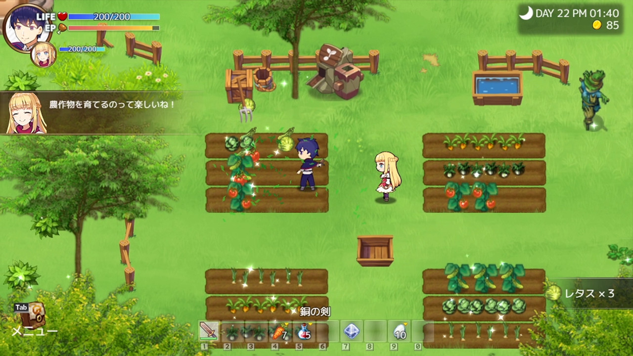 1. 畑、採集、釣り、モンスター討伐などで素材を集める