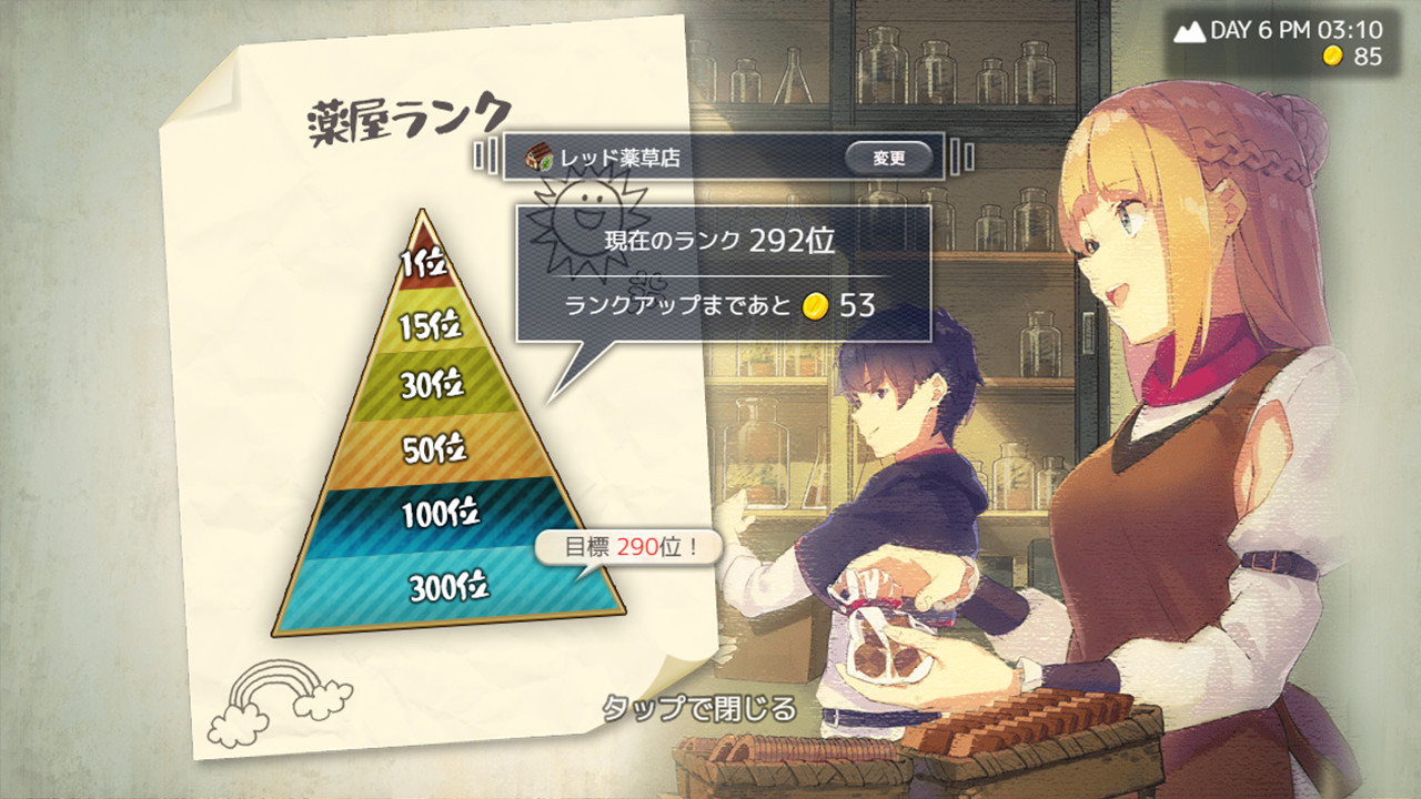 3. 薬や料理をお店で販売して薬屋ランクを上げる