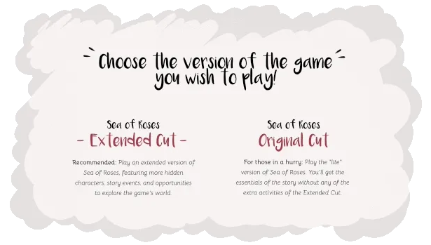 The Original Cut of the game is briefer, eliminating these extra activities and offering a condensed version of the story. You'll still get the fundamentals of the storyline but your playtime will be significantly shortened. It's up to you to play the version you'd like because both are included when you download Sea of Roses!