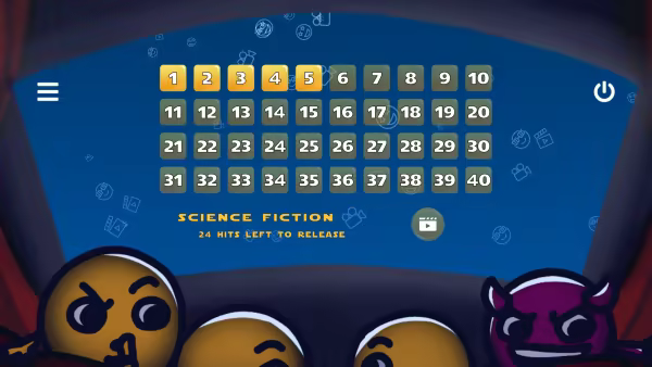 • Each level belongs to one of the following categories: classic, horror, action, comedy, thriller, romance, drama, adventure, science fiction, animation, western, fantasy, biography, musical, cult, miscellaneous and hard.