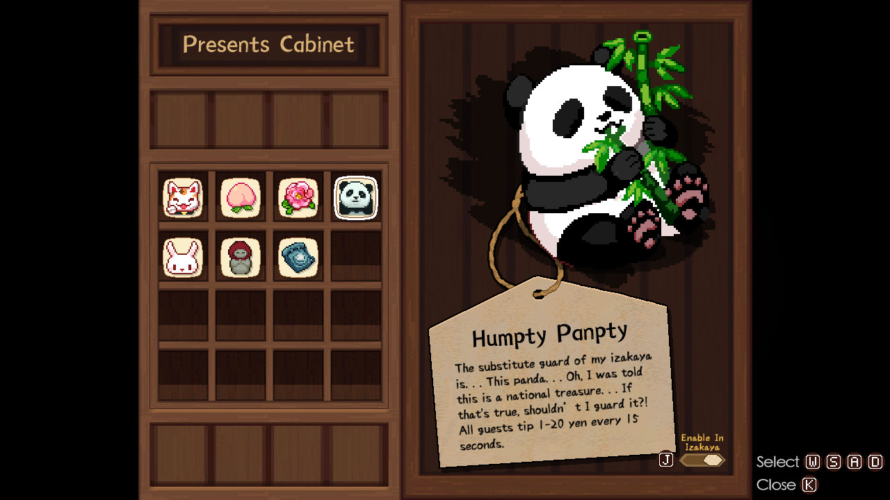 You play as Mystia, the proud owner of a mobile izakaya. During the day, you collect ingredients all over Gensokyo, learn new recipes, collect or buy beverages... all in order to create the perfect dining experience. In other words, there is no battle and no danmaku in this game, only customers with varying demands that you need to fulfill!