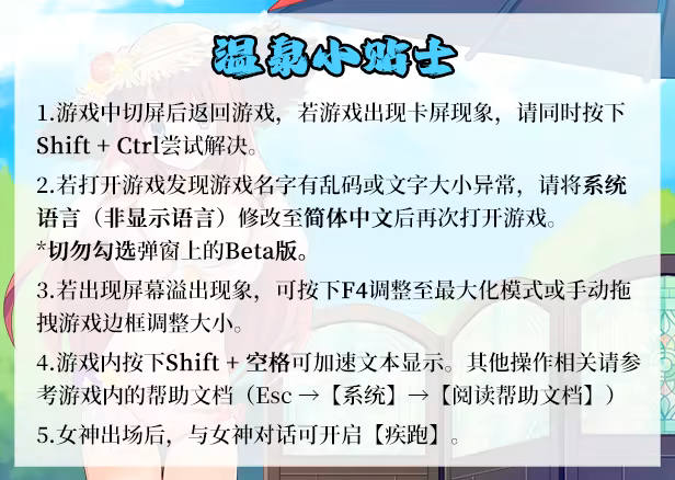 游戏中的部分场景会出现不适合未成年人的性暗示内容;请酌情决定是否进行游玩。