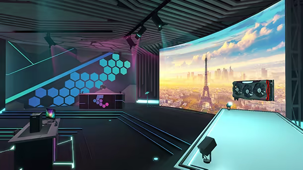 Welcome to the brand new EVGA workshop inspired by the EVGA Game Arena. Build and test cutting edge PCs, customise your supersized display, and check out the interactive GPU exhibits.