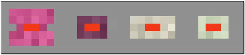 Mirroring to the right is enabled, the edge is not mirrored. In addition to the 4 pixels we now see two of them being mirrored