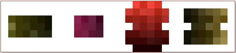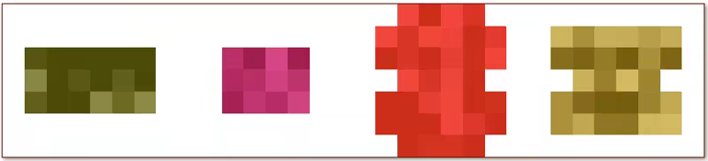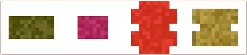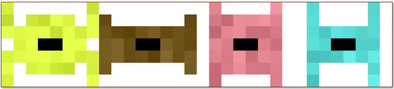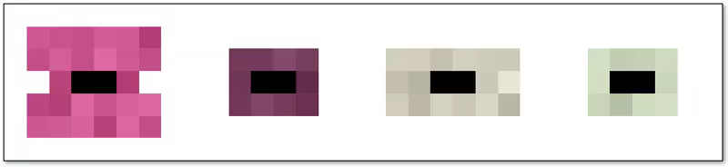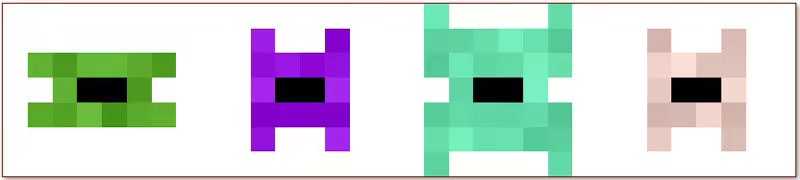 The color is displayed as a pixel's color, the behavior as a character (More under Brushes).