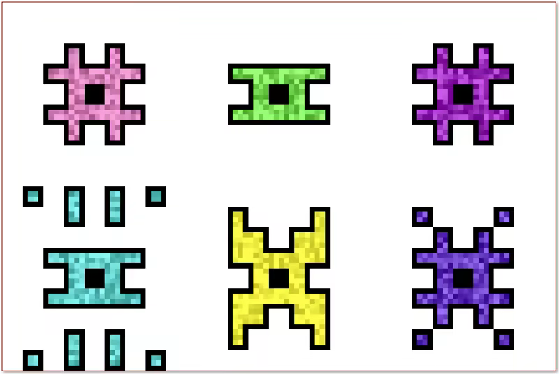 • Filler Pixels of this type will fill their surrounding area to a random degree. They are similar to the Walker pixels but instead of creating a trail, they create more radial shapes like drops of ink