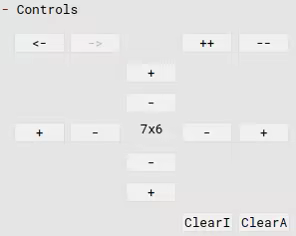 • - Decrease the size of the canvas by removing a row or column depending on the location of the button