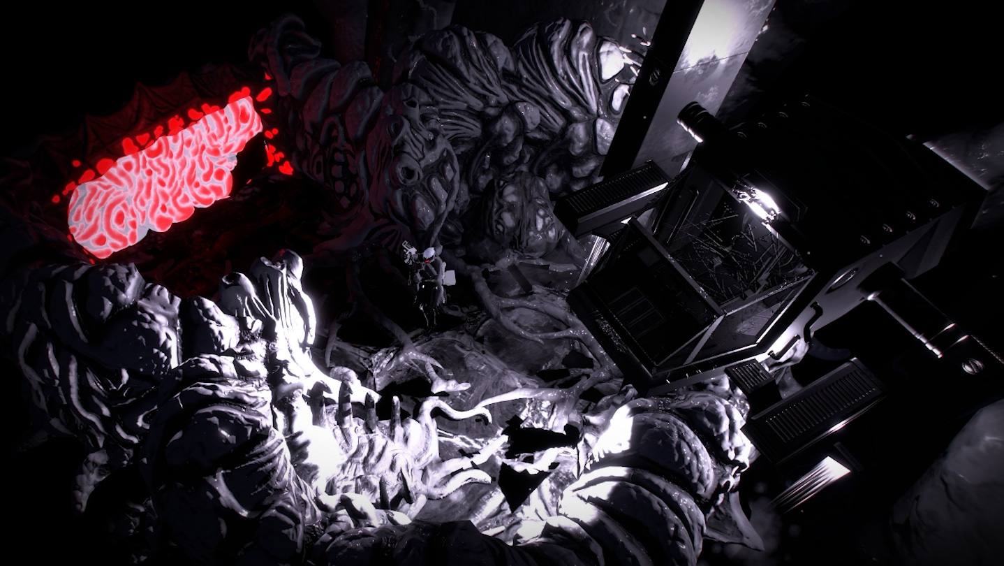 You’re an outlaw traveling through space, infinite and black, in search of the person who subjected you to such unspeakable pain. In fact, you’re so focused on your quest that you stopped paying attention to anything else, making your surroundings look muted. In return, however, your targets now appear all the clearer to you, constantly glowing in RED.