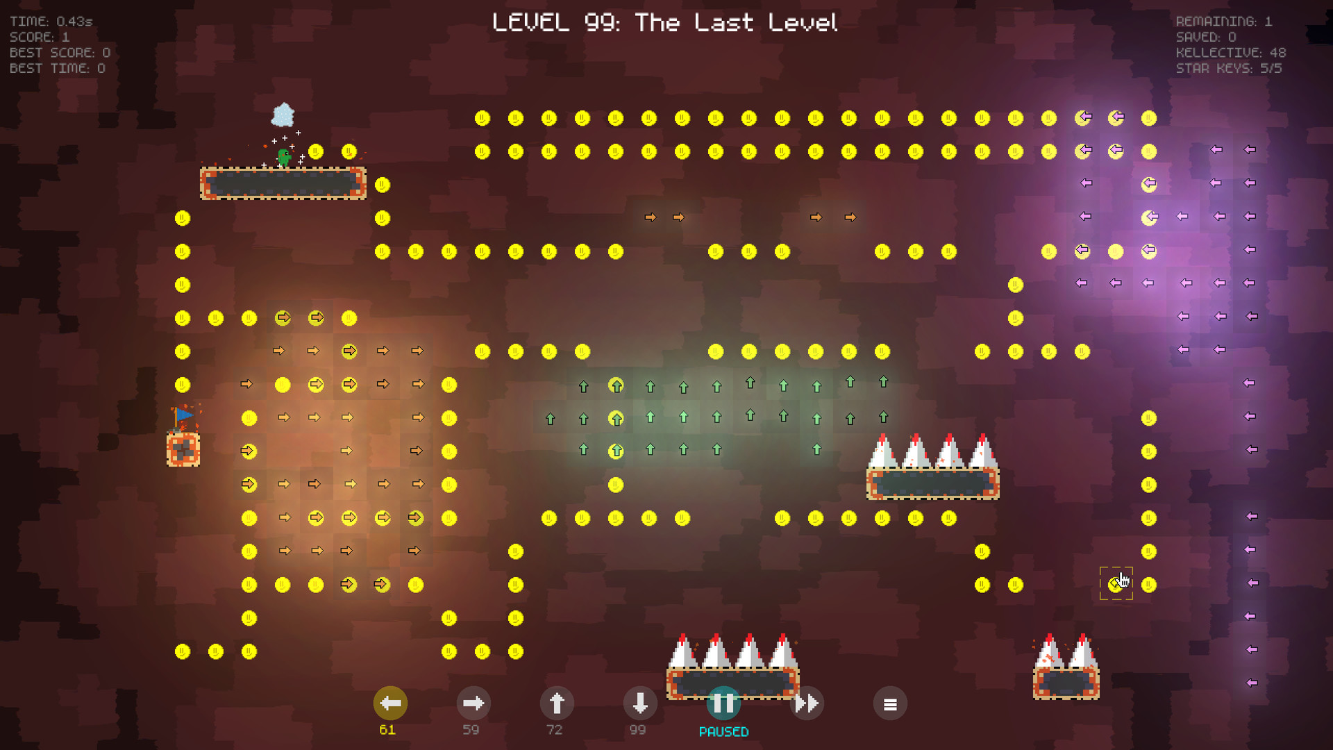 The objective seems deceptively simple! All you have to do in each level is figure out how to get your Kells from the entrance to the exit flag. The thing is, you can't control them directly and unlike in Lemmings, you can't issue them commands either. What you can do is place tiles around the level to change the flow of gravity! Can you figure out how to make use of careful Gravity Tile placement to guide your Kells on a journey through 100 levels and 8 themed islands to find the mysterious Last Level?