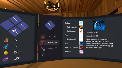 It's a VR action roguelike with a focus on melee combat and all kinds of abilities. Use more than just swords for fighting. Collect and use all kinds of abilities that can be activated with your gestures.