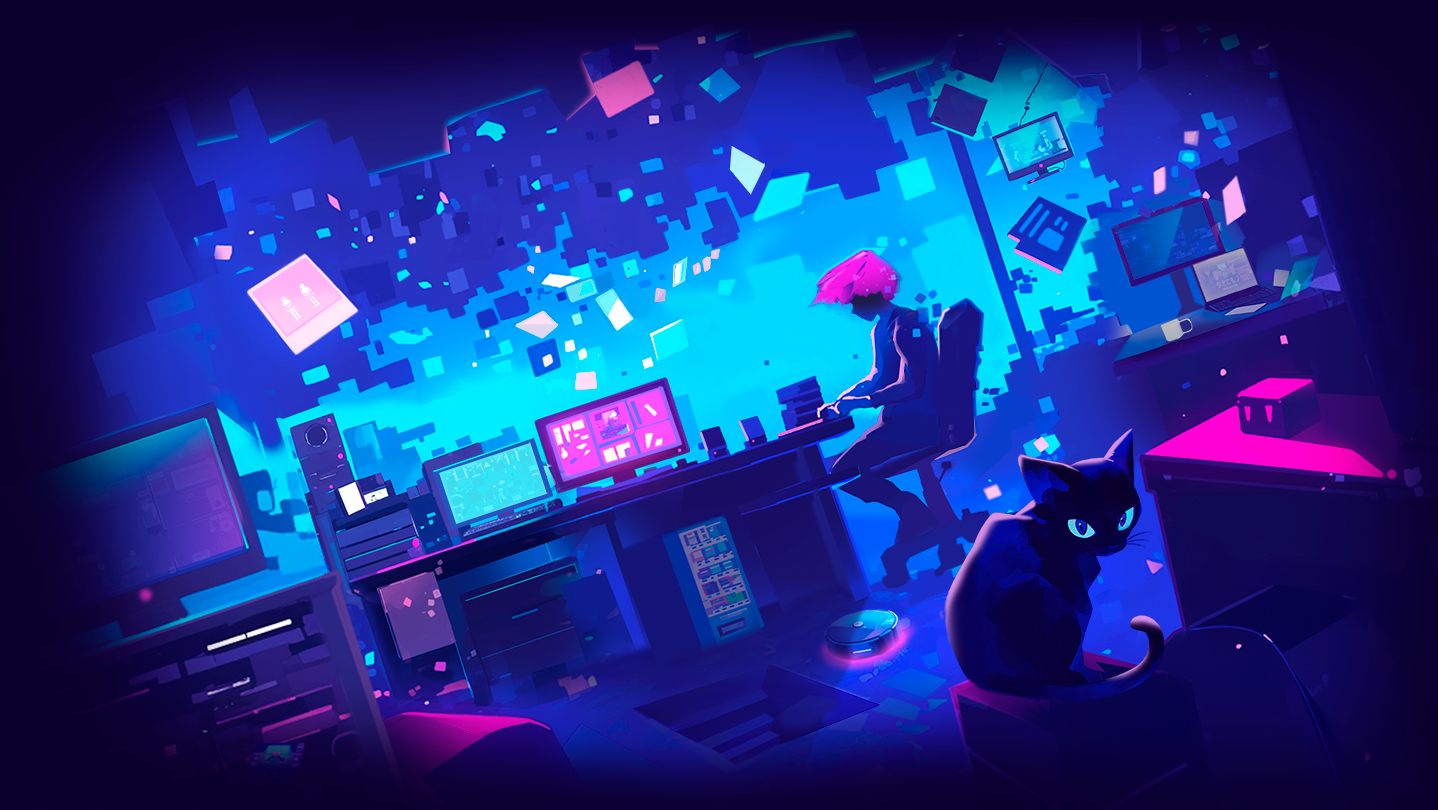 シミュレーター、クエスト、ローグライクの要素を持つ隠遁生活を送るゲーマーの冒険。猫の体に宿る魔術師の呪いを解くため、パラレルワールドを探索します。多くの敵が待ち構える変化するダンジョンを制覇します。現実世界では、家を整備し、オブジェクトを作成し、料理をし、旅行します。