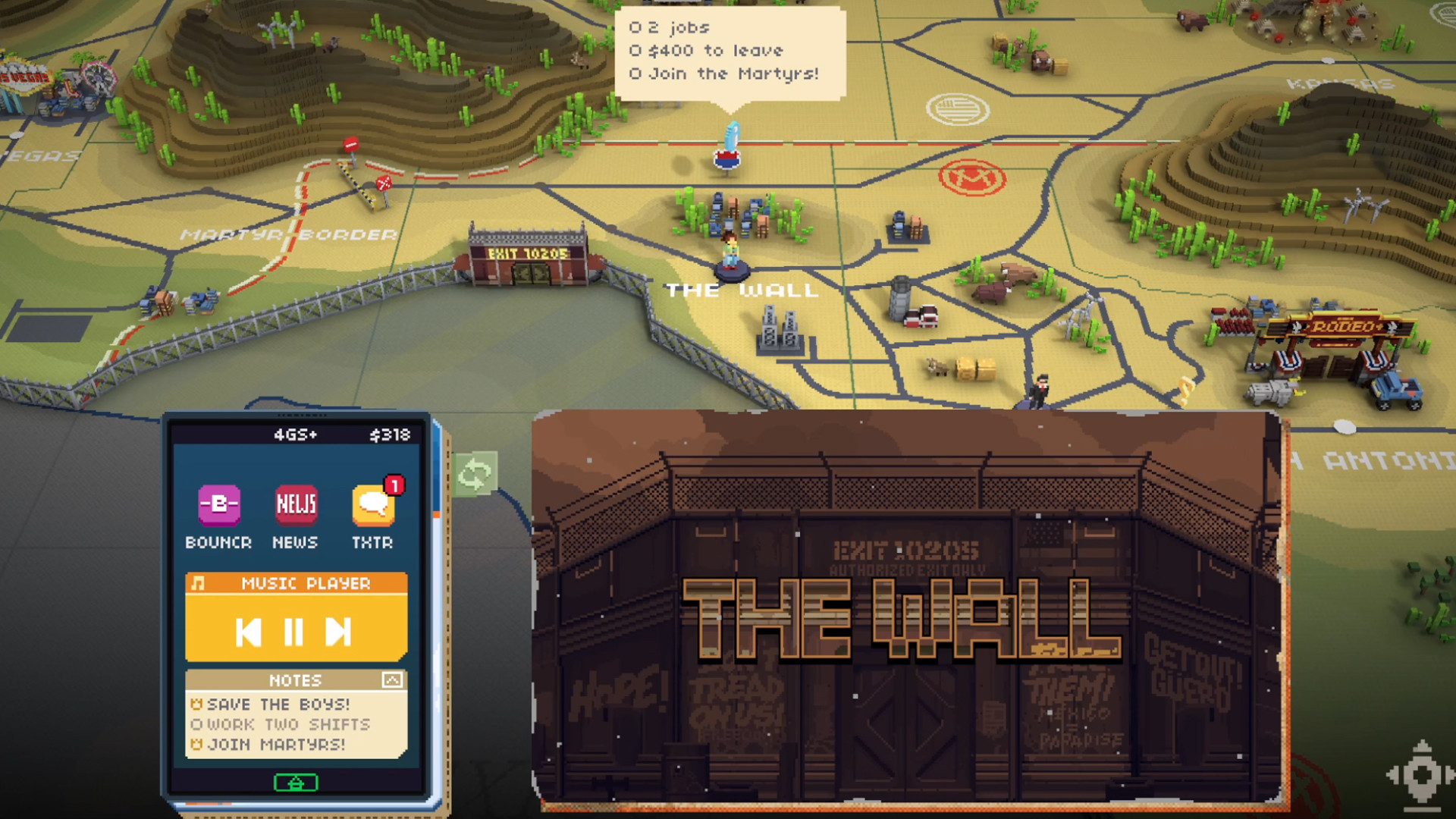Not Tonight 2 is an American document-checking road trip, fusing a time-pressure RPG with a politically charged, dark comedy where every decision matters. Will Eduardo's friends Malik, Kevin and Mari manage to locate and deliver his documents to Miami in time, or is this the end of the American dream?