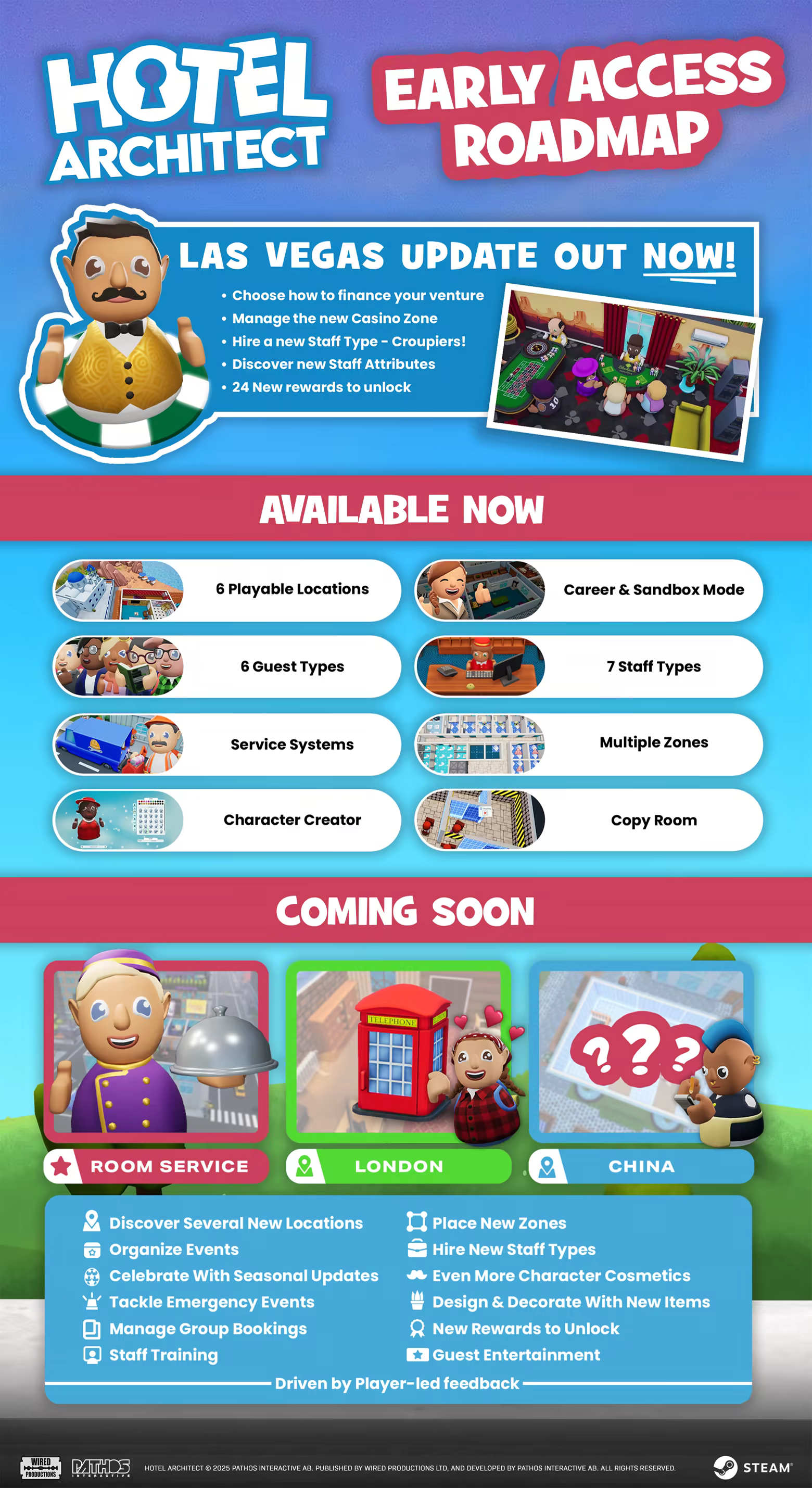 “We have chosen to enter into Early Access because we want to create a game that is shaped by a fully invested and passionate community. By receiving player feedback, we can expand upon and add to the foundations of our game to create the ultimate hotel management and simulation experience.”
