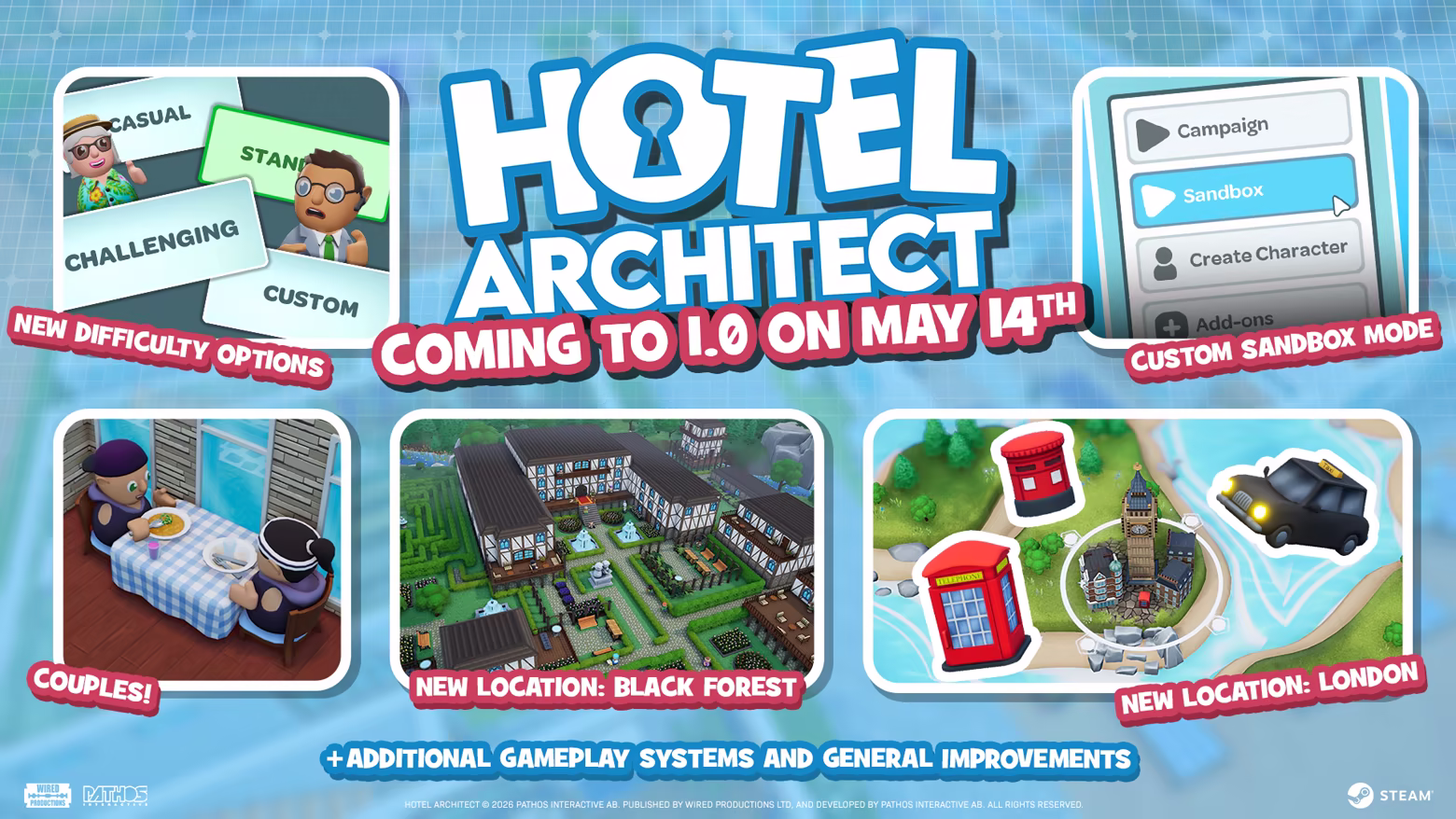 „We have chosen to enter into Early Access because we want to create a game that is shaped by a fully invested and passionate community. By receiving player feedback, we can expand upon and add to the foundations of our game to create the ultimate hotel management and simulation experience.“