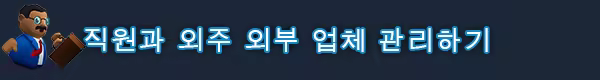 호텔 손님에 맞춰 직원을 고용하세요. 각 직원들은 정해진 능력치를 가지고 있으며, 이것은 작업에 긍정적이거나 부정적인 영향을 미칩니다. 이들의 레벨을 높여 더욱 뛰어난 직원으로 만들어주세요! 외부 업체를 불러 물류를 관리하고, 쓰레기를 치우고, 창고를 채우고, 호텔을 깨끗하게 유지하세요.