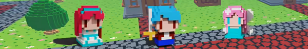 a voxel art world by equipping yourself with various weapons.