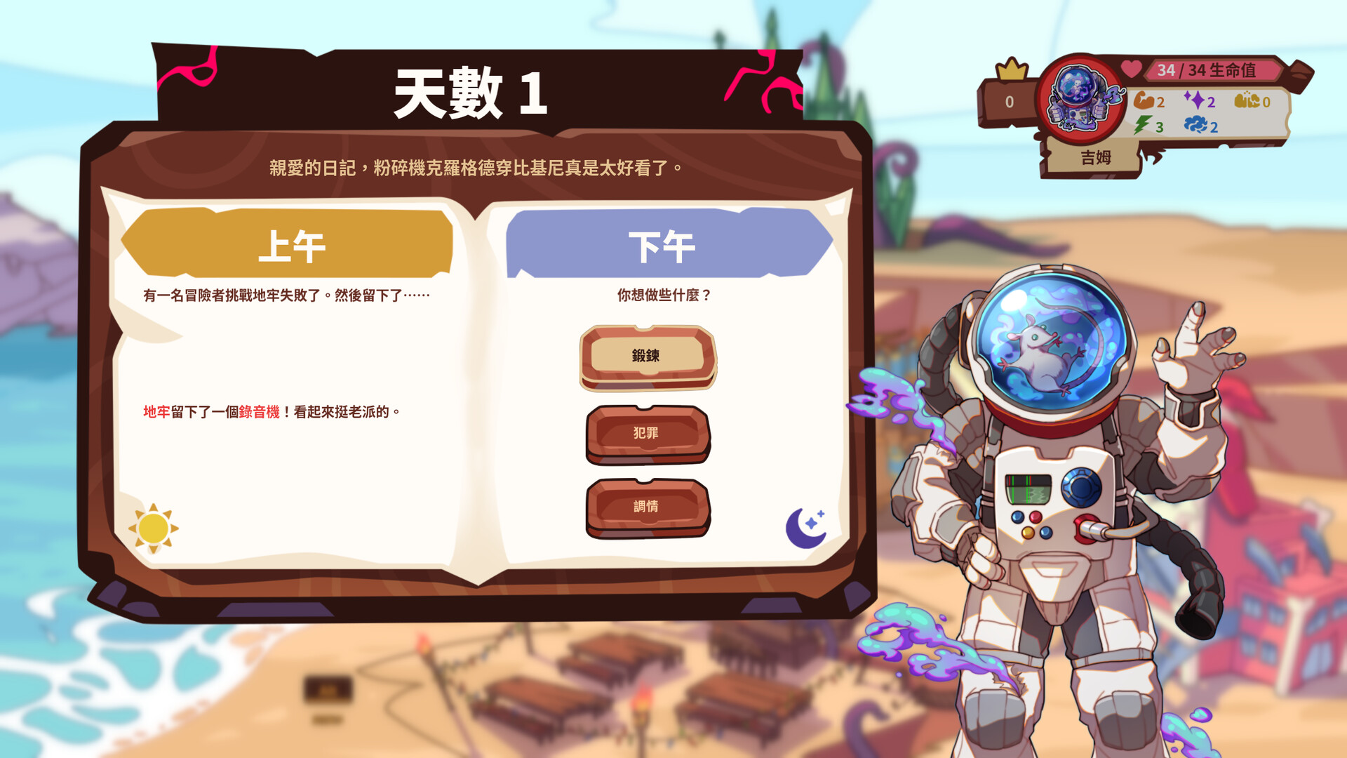 遊戲主要受詼諧多變的故事所驅動,支持單人遊戲與至多四人聯機遊玩,你的偏好將影響角色屬性和和遊戲選擇影響故事情節。具體來說,每一天你都可以自由決定去哪裏度過、與誰進行溝通,不同地點會使你獲得相應的屬性提升。