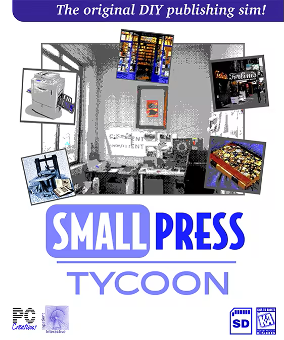SMALL PRESS TYCOON is the original DIY publishing adventure sim. Print chapbooks and zines, hold readings, discover new and exciting authors, sign distribution deals, and even win industry awards!