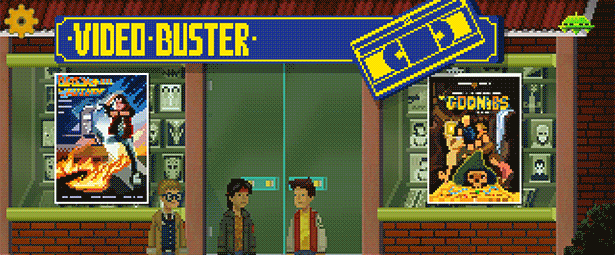 Explore the world oozing with nostalgia, check the Video Buster Store for clues, challenge other kids at the Laser Llamas Arcades, go learn a new trick at The Emerald Sword comic store, try to get along with the punk looking Lost Boys at their hideout or even dare to ask THE BULL, the quintessential 80s Action hero, for some help!