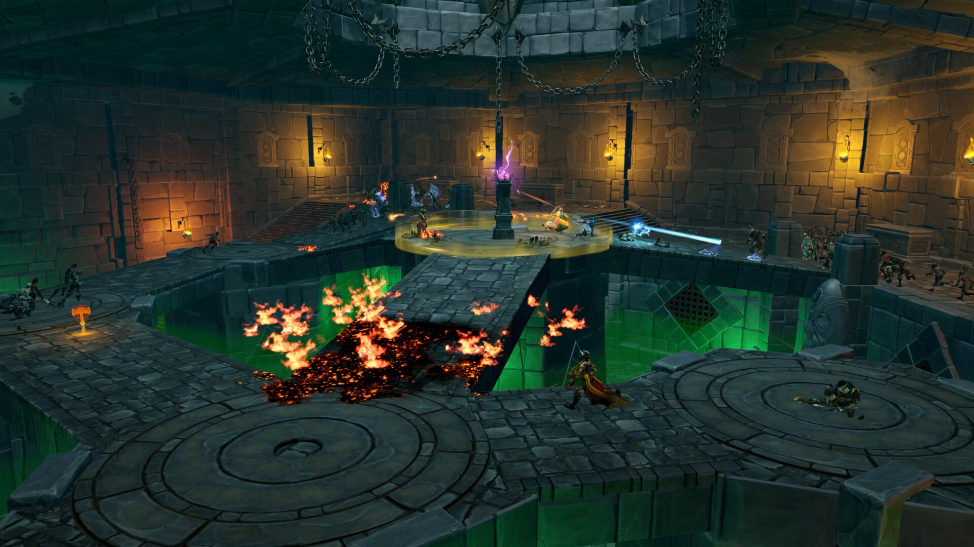 Dozens of items to help your heroes, harm your enemies, and survive the battlefield can be found scattered all throughout. Champions can also expect the occasional divine pick-me-up from the gods themselves, whose places of power will attack enemies and boost weary Champions. Watch out, though - drop the ball in protecting these gifts from the gods, and Hel's minions will swipe the power for themselves.