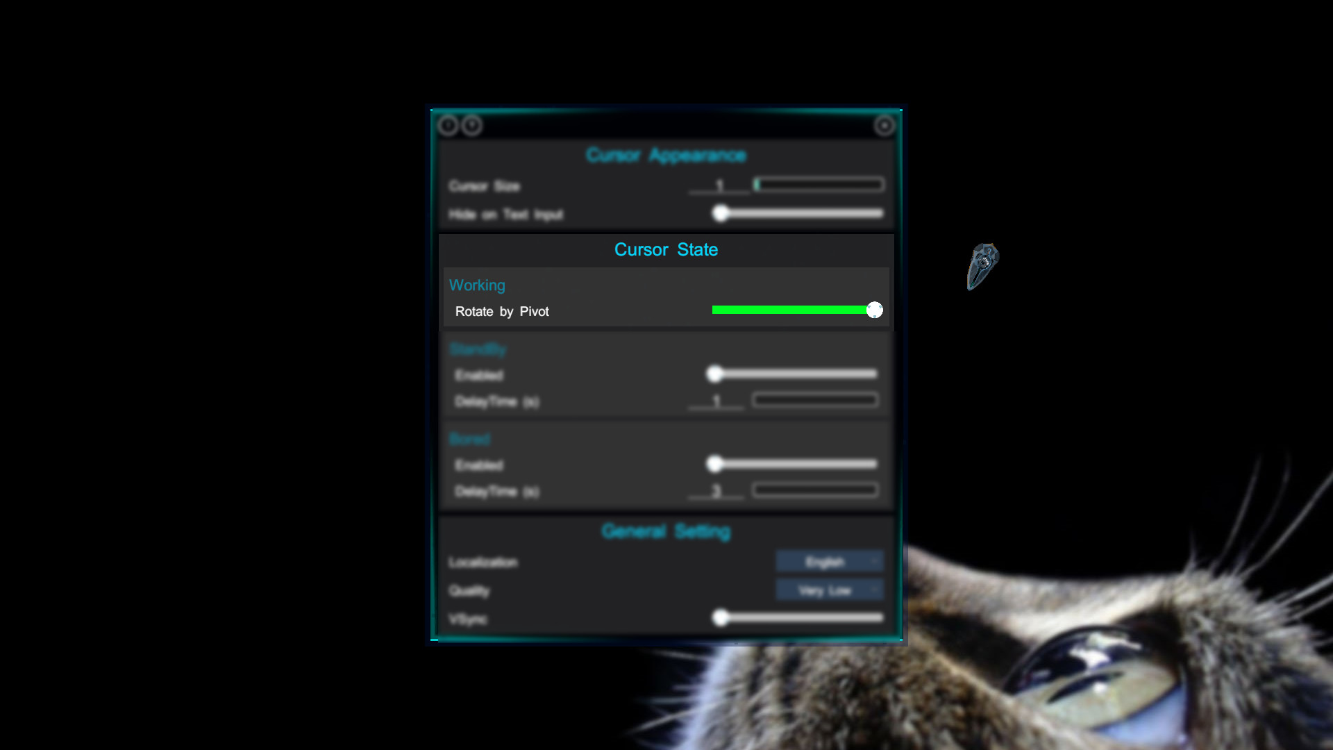 • This app will hide system cursor on start, and restore it on quit, so please wait for it to exit when you trying to shut down or logoff. If the app unexpectedly shuts down and casue the missing system cursor, you can just reopen the app, and you are good to go.