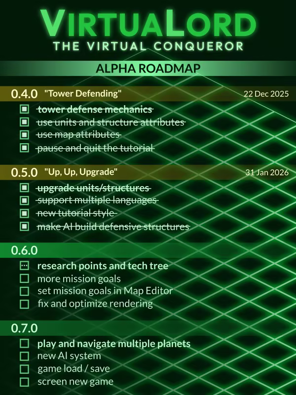 Virtualord befindet sich derzeit in der aktiven Entwicklung und im Alpha-Stadium, was bedeutet, dass noch nicht alle Funktionen fertiggestellt sind und viele Design- und Grafikelemente noch nicht endgültig sind.