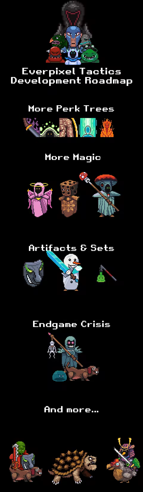“Everpixel Tactics is an ambitious effort - especially for a one-man shop making it in his spare-time. Early access initially launched in 2021...but I quickly found it difficult to patch bugs. Worse, "fixing" bugs created new bugs. So what was I to do? Rewrite the entire codebase, obviously. I have done that, but I now expect the full game to launch much later than initially planned (originally I said 2024!)
