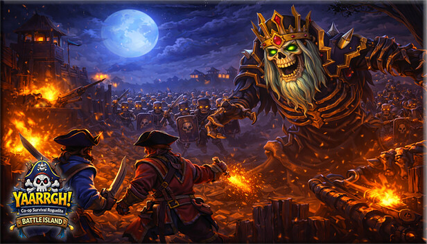 YAARRGH! Battle Island is a high-pressure co-op survival roguelite where escalating skeleton invasions tear through your island defenses.