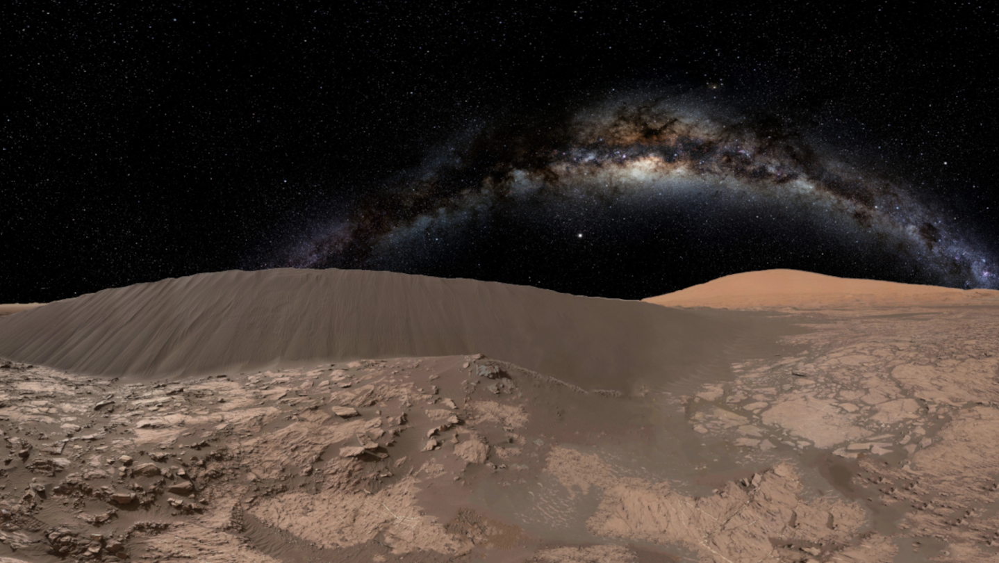Walk across the rocky surface of Mars, and enjoy the beauty of the night sky.