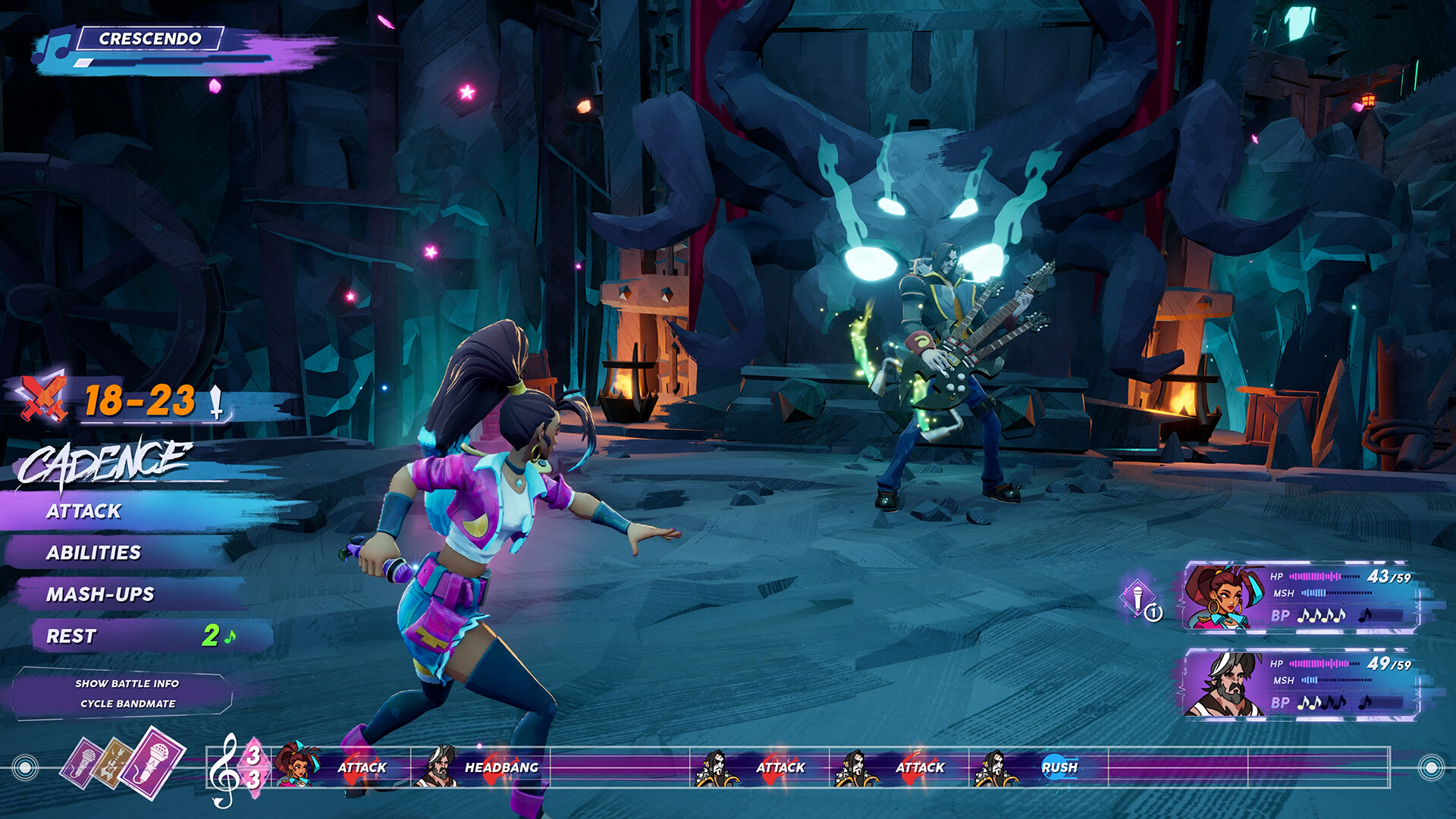 In this turn-based RPG musical, join Cadence as she recruits an ensemble of musicians on her quest for stardom. Experience turn-based combat like never before, where each battle is a musical performance with evolving combat conditions and genre-bending mashup attacks!