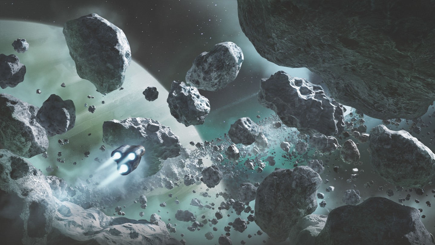 Every asteroid body is a 3D object. The 3rd dimension adds another level of complexity to your factory designs. Asteroid mass can be removed or deployed as needed. If a mine gets depleted, it leaves a hole in the ground.