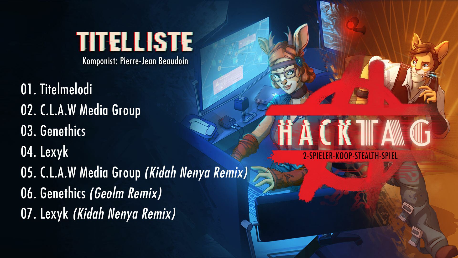 Der offizielle HACKTAG-Soundtrack enthält sieben Songs – darunter 4 Originaltitel und 3 Remixe – mit einer Gesamtdauer von 25 Minuten. Enthält MP3-Audiodateien.