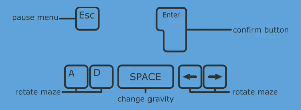 Gravitaze: Two is a minimalist puzzle whose objective is to make the circle reach the center of the labyrinth, changing the gravity of the circle and rotating the labyrinth.