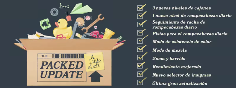 A Little to the Left ahora incluye un archivo de puzles con en el que podrás acceder de forma permanente a los niveles de temporada que antes tenían una duración limitada. Disfruta ya de los revoltijos de temática navideña, de Semana Santa, Halloween y más, sea el mes que sea.