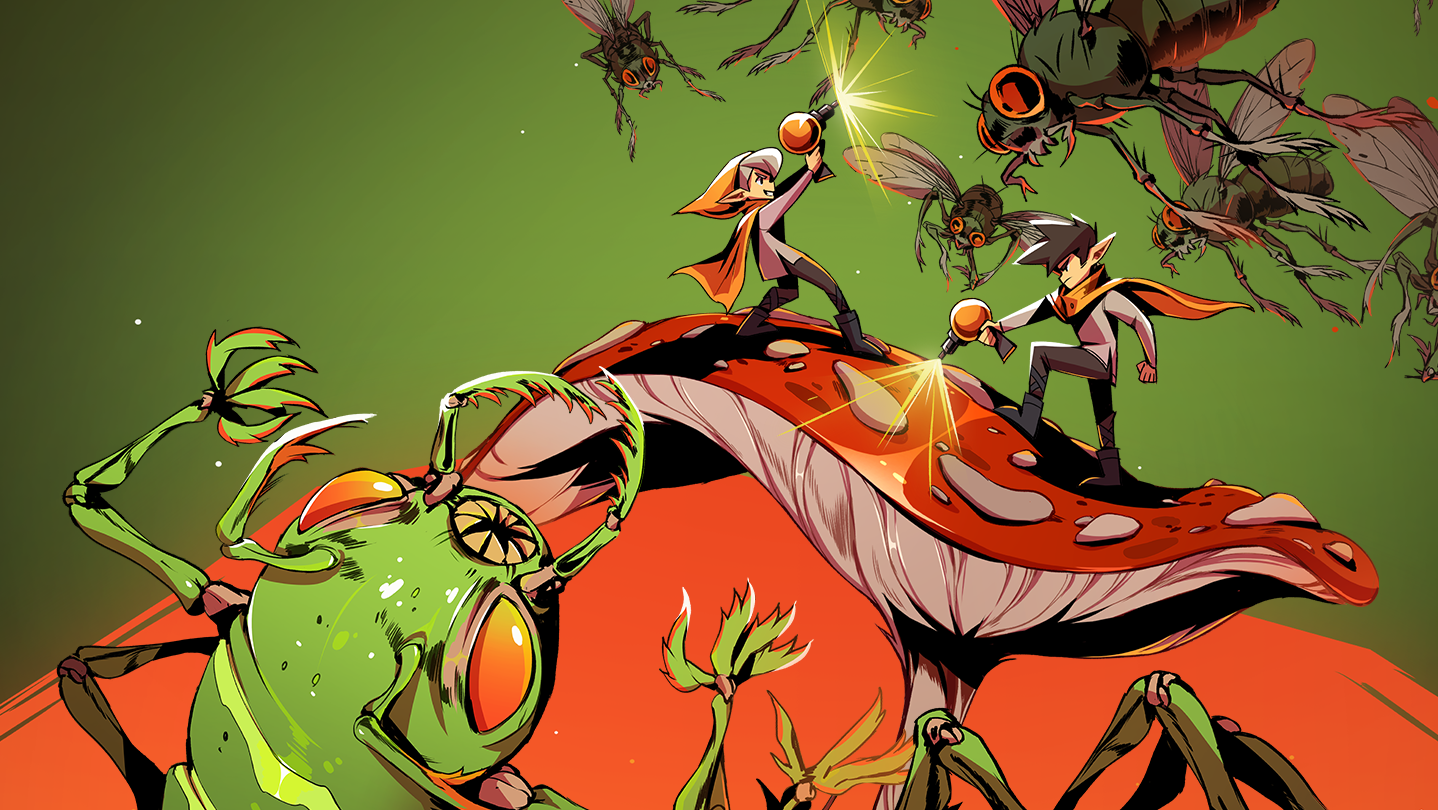 Blast bugs and chase high scores in this glorious revival of an old-school classic, all while jamming to a heart-pounding original score by Megan McDuffee. Play solo or tag in a friend for local co-op across 30 unique challenges or the endless arcade mode.