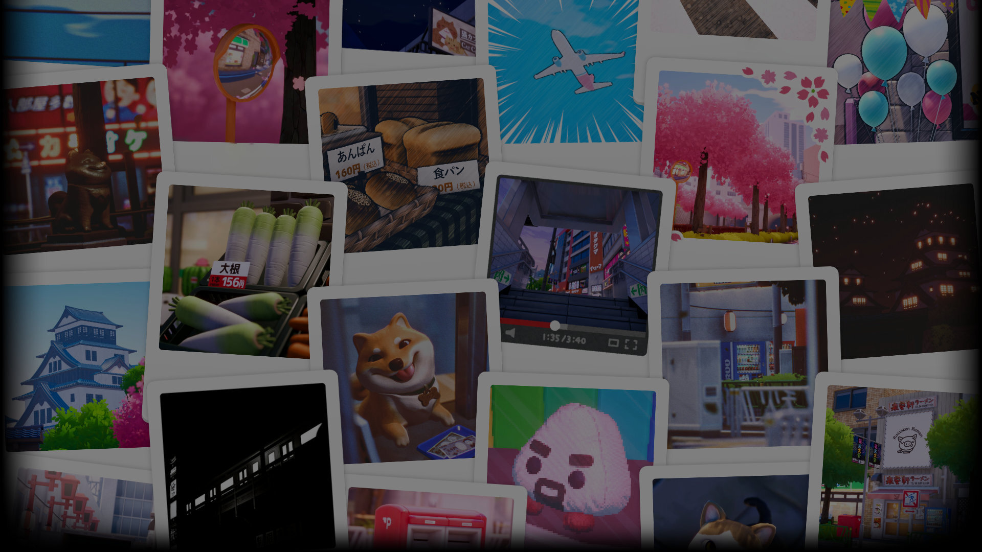Explore bright, fictional Japanese streets filled with details and interesting objects to capture with your camera. Each photograph you take will translate the name of the content into Japanese and English so you can learn with your surroundings.