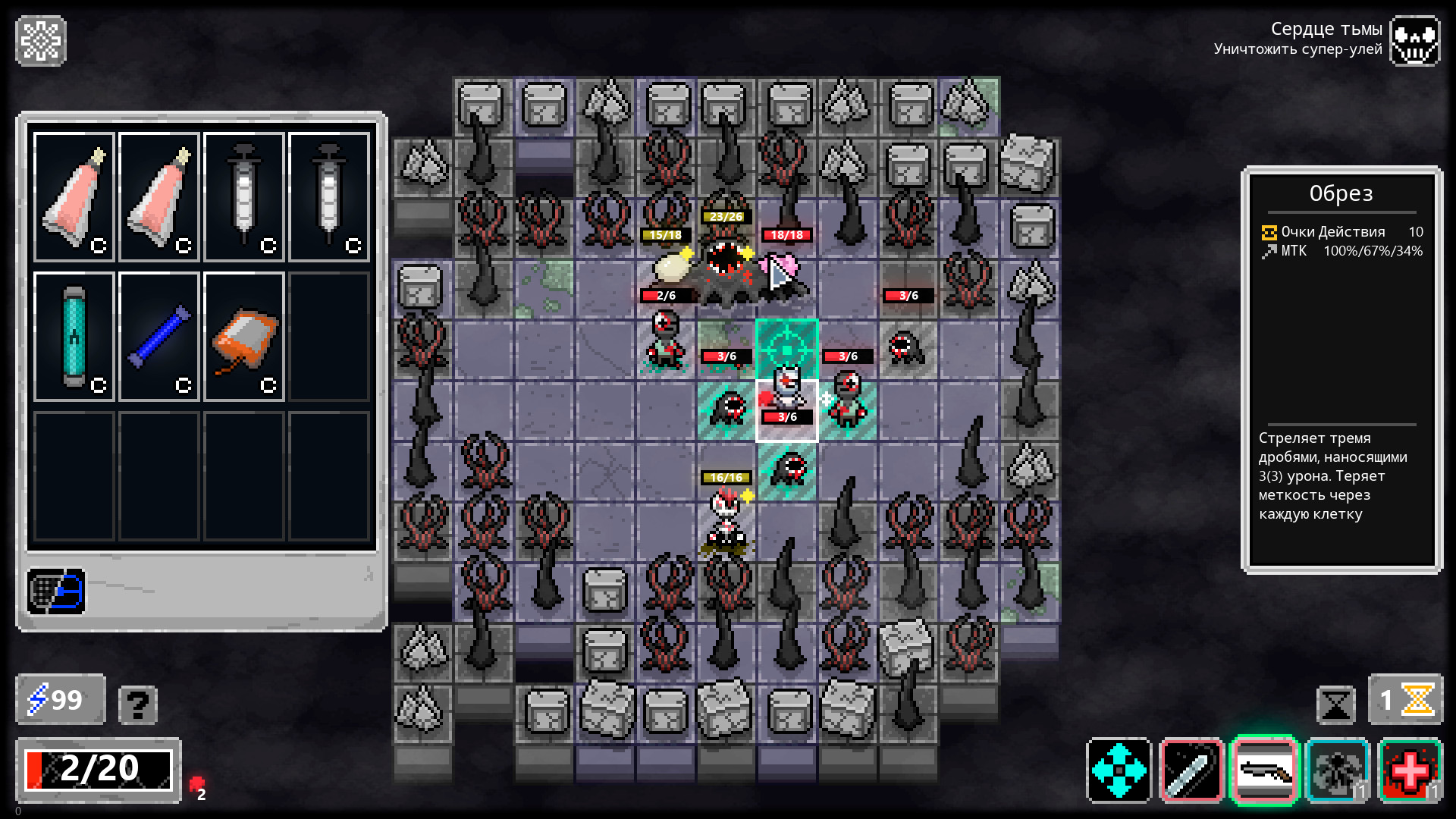 * Разнообразные билды: Комбинируйте умения четырёх типов, артефакты, расходники и шрамы для прохождения миссий с различными условиями. Нужно находить компромисс между универсальными навыками и точечными инструменты против конкретных врагов.
