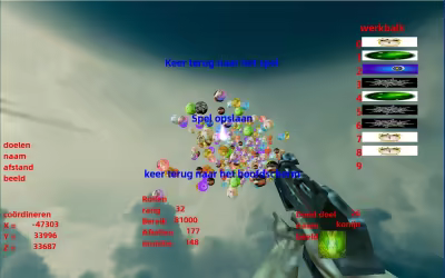 Het midden aan de linkerkant is de doelinformatie, die de doelinformatie zal weergeven waarop u met de muis richt. Doelinformatie omvat naam, afstand en afbeelding. Linksonder staat de coördinaatinformatie, die de coördinaten van de huidige muisaanwijzerpositie weergeeft.