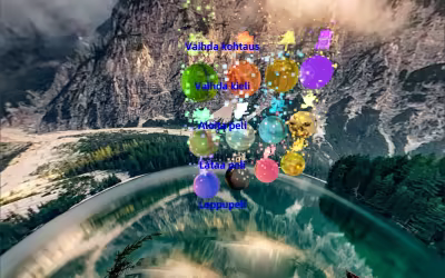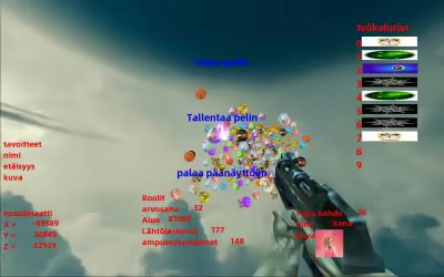 Vasemmalla puolella on kohdetiedot, jotka näyttävät kohdetiedot, joihin tähtäät hiirellä. Kohdetiedot sisältävät nimen, etäisyyden ja kuvan. Vasemmassa alareunassa on koordinaattitiedot, jotka näyttävät nykyisen hiiren osoittimen sijainnin koordinaatit.
