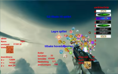 Dette er et uformelt førstepersons skytespill for en spiller. Du kan bruke rekvisitter til å veksle mellom forskjellige 3D-scener og forskjellige språk. Når nivået øker, beveger målet seg raskere og raskere.