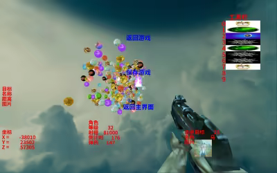 中间显示的是当前玩家的信息,包括等级、射程、倒计时和弹药。用要在规定的时间内击杀目标。弹药量也有限制。时间用尽或者弹药用完,游戏结束。随着玩家等级的提升,射程、时间和弹药量都会提升。