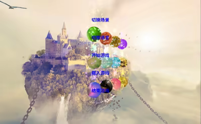 主菜单包括切换场景,切换语言,开始游戏,载入游戏,结束游戏