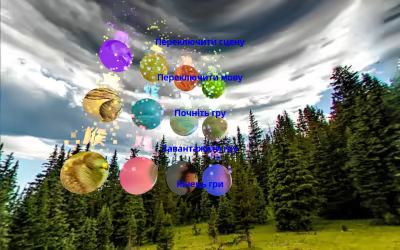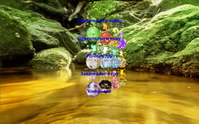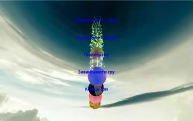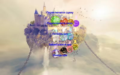 Головне меню включає перемикання сцен, переключення мов, початок гри, завантаження гри та закінчення гри