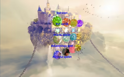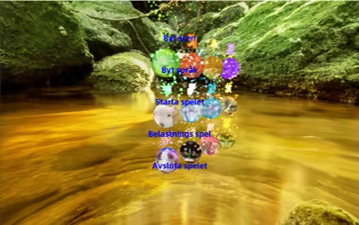 Huvudmenyn inkluderar att byta scen, byta språk, starta spelet, ladda spelet och avsluta spelet