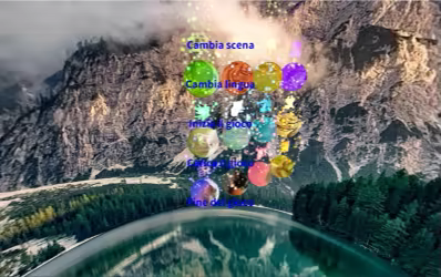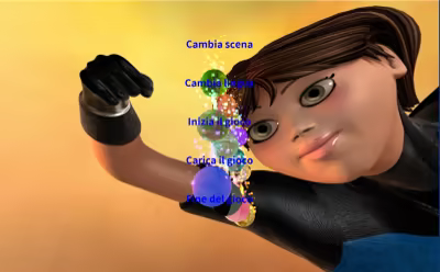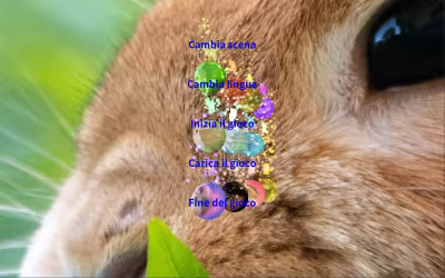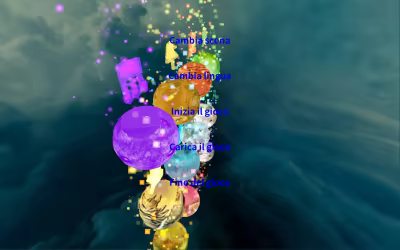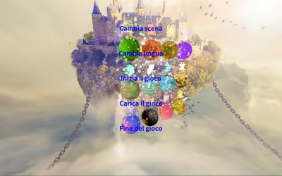 Il menu principale include il cambio di scene, il cambio di lingua, l'avvio del gioco, il caricamento del gioco e la fine del gioco