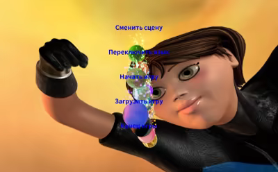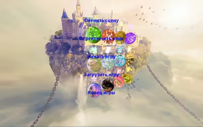 Главное меню включает переключение сцен, переключение языков, запуск игры, загрузку игры и завершение игры.