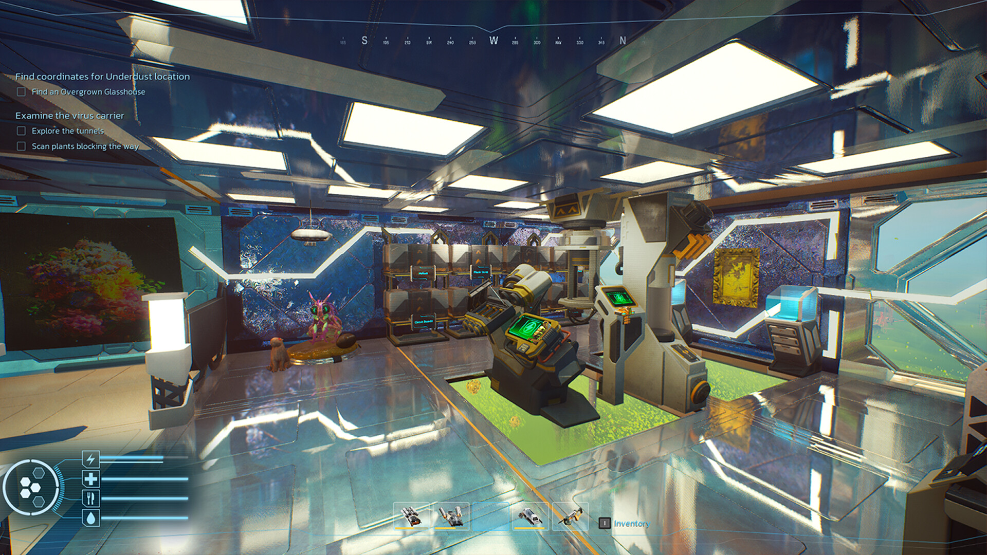 Your scientific know-how will allow you to build and operate different machines. Analyze scanned items and reverse engineer lost technology. Research new ways of obtaining food and resources, discover new tools, and increase the chance of your survival.