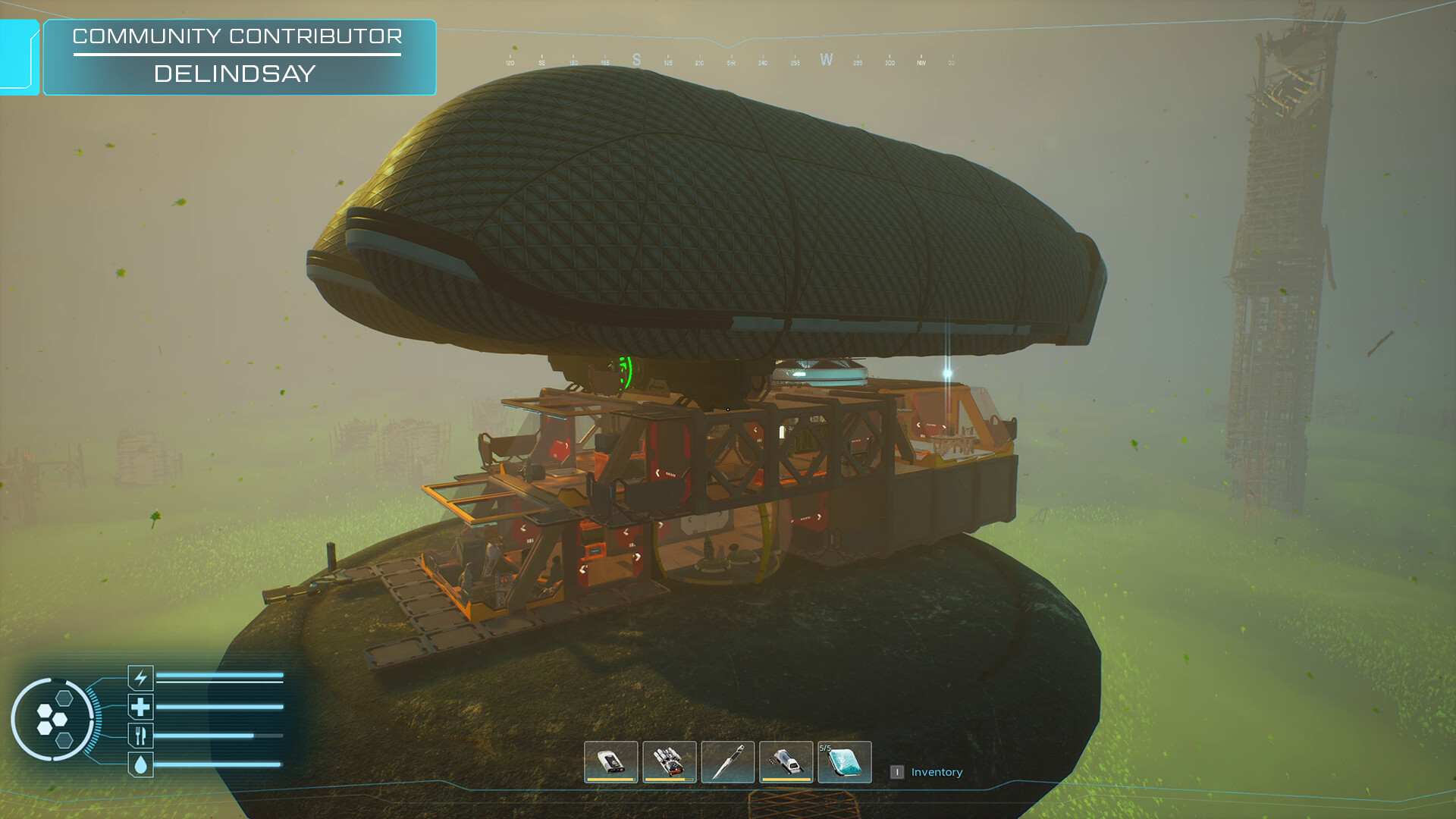 “Our game allows for world exploration, gathering resources, reverse engineering technology, operating the airship, flying it, and managing its hull integrity and weight. The player can build new modules and customize the interiors. In addition, as a part of the survival loop, players need to eat, drink and take care of their health. Currently, the game has 15+ hours of gameplay, including story missions, side content, and airship customization content. This number will continue to grow as we add each major update. Please see the section "About This" to learn about features available in the game.”