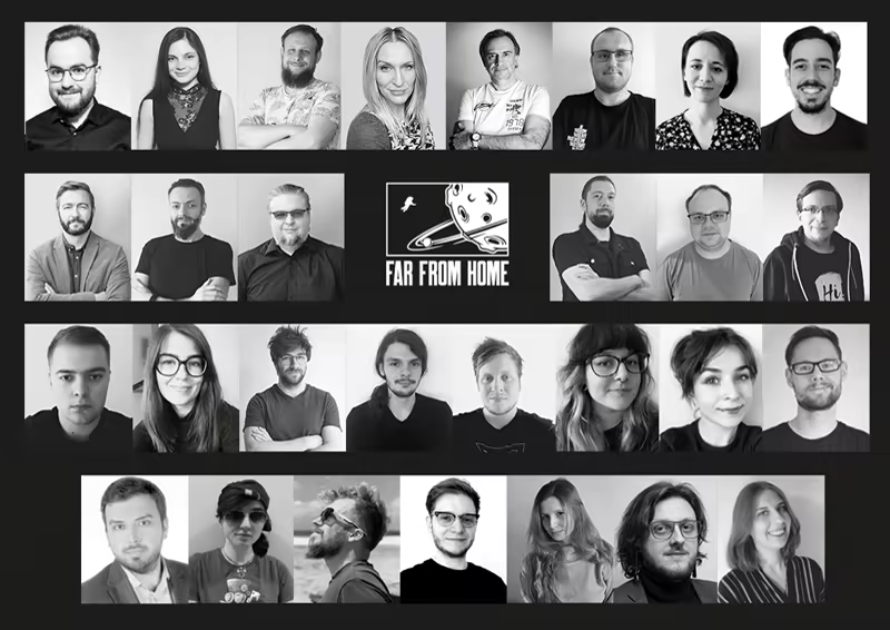 We’re Far From Home, an experienced game dev team based in Wroclaw, Poland. We are a group of friends and colleagues who worked together on quite a few projects and titles such as the Dying Light series, Divinity Original Sin series, The Medium, Outriders, League of Legends and many others