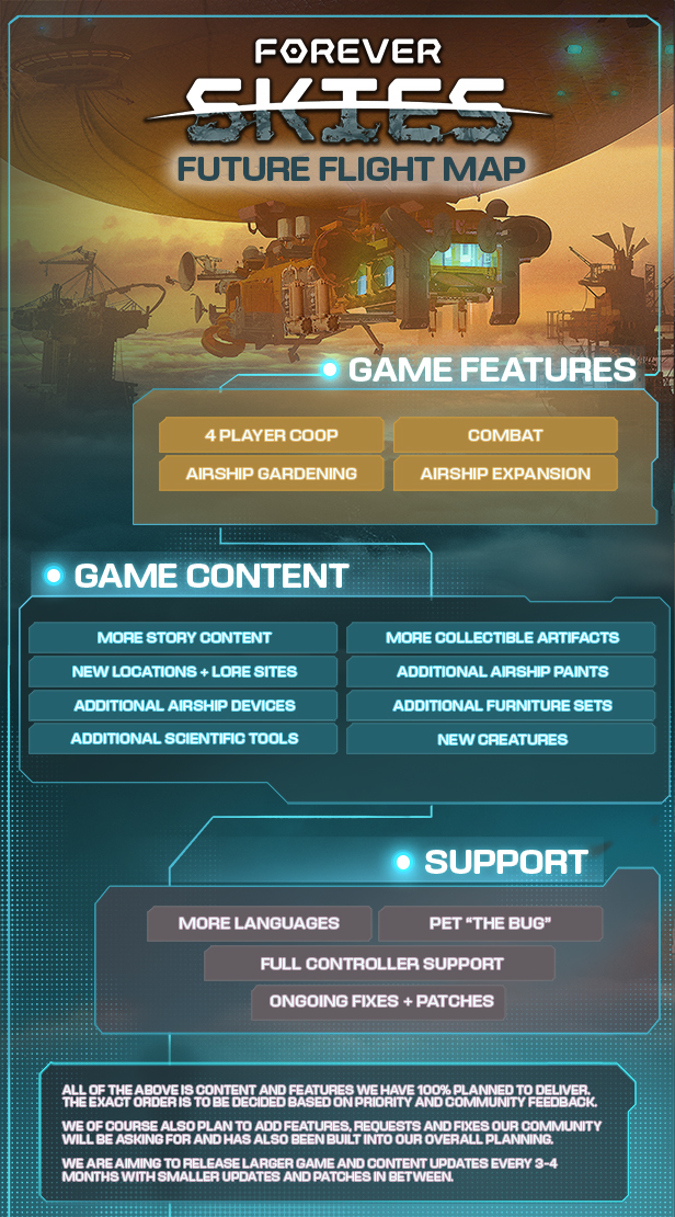 “At Far From Home we see Early Access as a toolbox. When properly used with the community it can make a game as great as possible. It helps us understand what features and mechanics are used and enjoyed, but also which are dead on arrival. We cannot imagine creating a game like Forever Skies without the community. We see feedback from Early Access players as a compass to show us what parts of the game have the most potential and should be worked on.